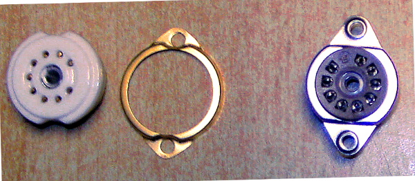Kleiner Tip, eigentlich klar, wird aber immer wieder auch von mir nicht so befolgt wie es sein sollte. Bevor man was bestellt, erst mal alles genau überlegen. Hier die Röhrenfassungen: Links die nicht verwendbaren im Nytone, rechts die richtigen. Leider hatte ich die Löcher für die Fassungen schon zu weit gemacht und merkte erst beim Einbau das die linken nicht geeignet waren. Es müsste aber auch so noch gehen.