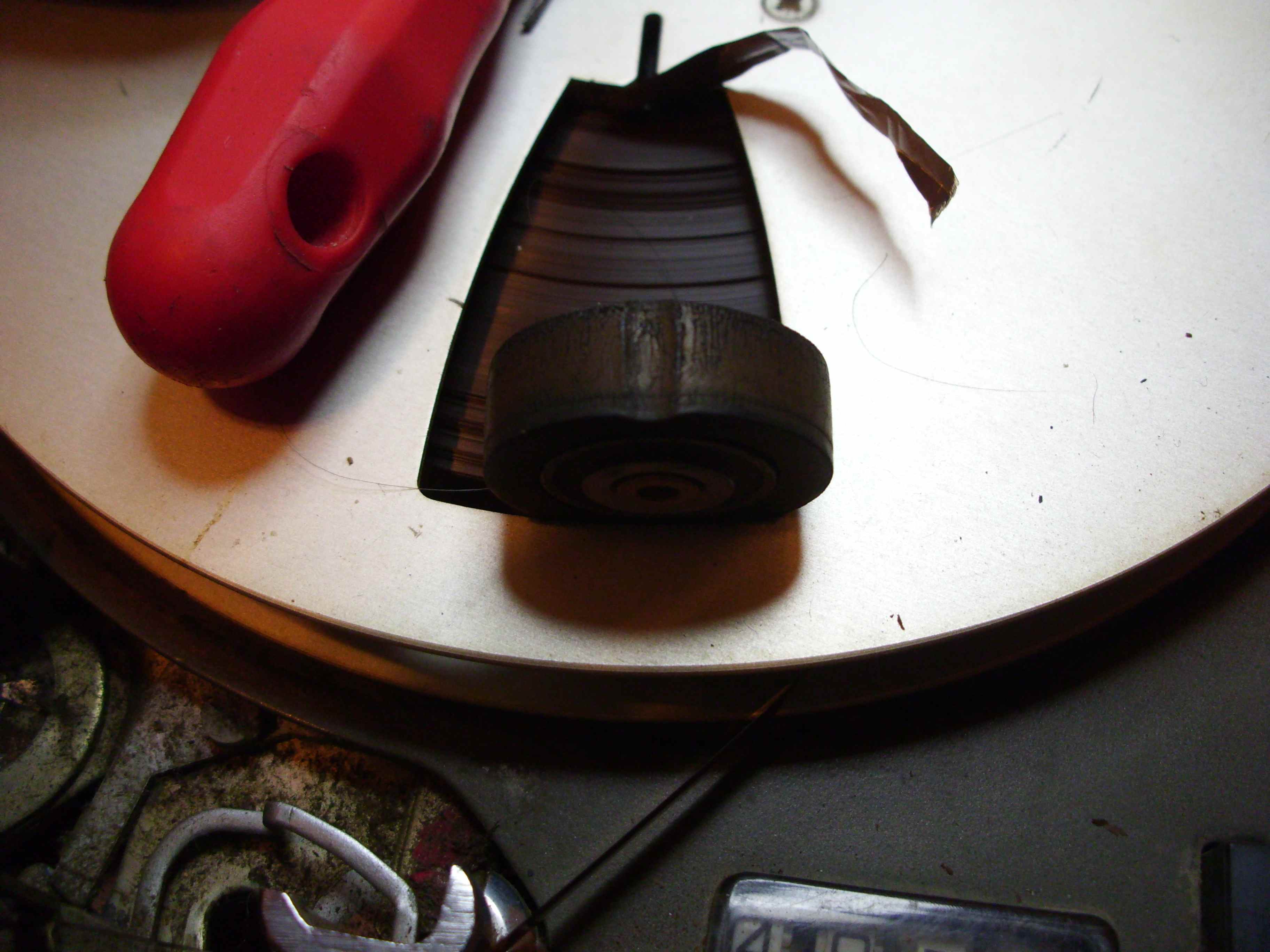 Gestern hab ich aus England eine kleine Tandberg bekommen. Zunächst hab ich mal den Stecker getauscht. Ich wußte nicht das die Enländer ihre Sicherungen im Stecker haben???. Danach ging es zum Probelauf. Vor und Rückspulen ging ohne Probleme. Nur das Abspielen ging nicht. Der Grund ist auf den Bildern zu sehen. Ich habe es recht häufig wenn ich ein Tonbandgerät bekomme das wer auch immer mal irgend wann daran gespielt hat und die Andruckrolle an der Capstanwelle anliegt. Das ist dann natürlich das aus für die Rolle. Letzte Woche hab ich im Keller die Regale umgeräumt. Dabei hatte ich ein TB mit kaputter Rolle in der Hand. Danach zufällig einen Karton mit meiner alten Faller Rennbahn. Und da kam mir sowas wie ein Geistesblitz. Carrerabahn!!!! Ein Freund von mir fährt Slotrennen und die haben Sliks die sie auch regelmäßig ja nach Bahn tauschen. Ich also bei uns in den nächsten Laden und das ergebnis ist auf den Bildern zu sehen. Daraus bekomm ich 4!!! Rollen für 5. Im Netzt kostet die Rolle für die Tandberg oder vergleichbare andere TB's zwischen 20 und 30€