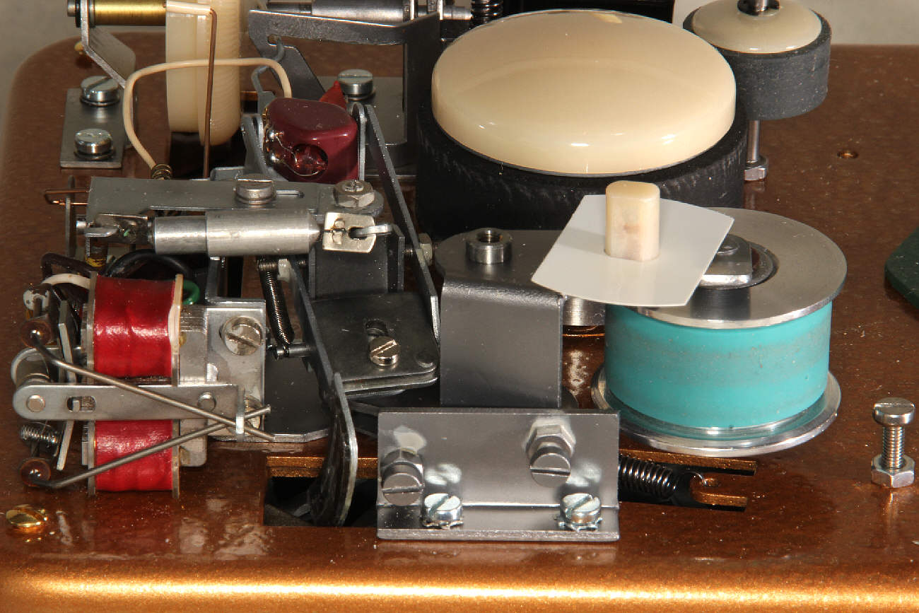 1.) Zu den Schrauben. Ist mir noch gar nicht so aufgefallen, wahrscheinlich weil ich noch nie ein Gerät total zerlegt hatte. Ich habe bei einem meiner Geräte nachgesehen und bemerkt, dass die Schrauben mit einer Mutter gekontert sind und mit grauem Lack gesichert wurden. Das lässt schließen, dass es wichtig zu war die exakte Höhe beizubehalten. Meine Vermutung ist, dass es sich um einen Fixpunkt zum Aufsetzen einer Justage-Einheit handeln könnte. Ich werde mich mal im Buch "Das Tefifon" von Herbert Jüttemann schlau machen. Sicherlich besitzen sie auch dieses Buch. Haben sie dort schon mal nachgeforscht?