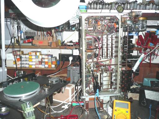 Hallo Jürgen, Hallo Rainer, die beiden vorgestellten Geräte funktionieren. Das Schaub Supraphon bekam ich im erbärmlichen Zustand. Das Chassis mit Drahttonlauferk in der Werkstatt sehr schwer zu hantieren. Angefangen vom def. Skalenantrieb über entrosten von Metallteilen war ich über eine Woche damit beschäftigt, dieses Monster von Radio-Drahtton-Gerät (35kg) wieder einigermaßen zum Spielen zu bringen. siehe Bild 8 Unter Schaub Supraphon 2 ist das Schaltbild dieses Monsters m.f.G. Friedhelm so für Heute schluss ich muß gleich zur Chorprobe. Für Männerchor Interssierte GALA KONZERT http : // www . saengerbund-ghh . de