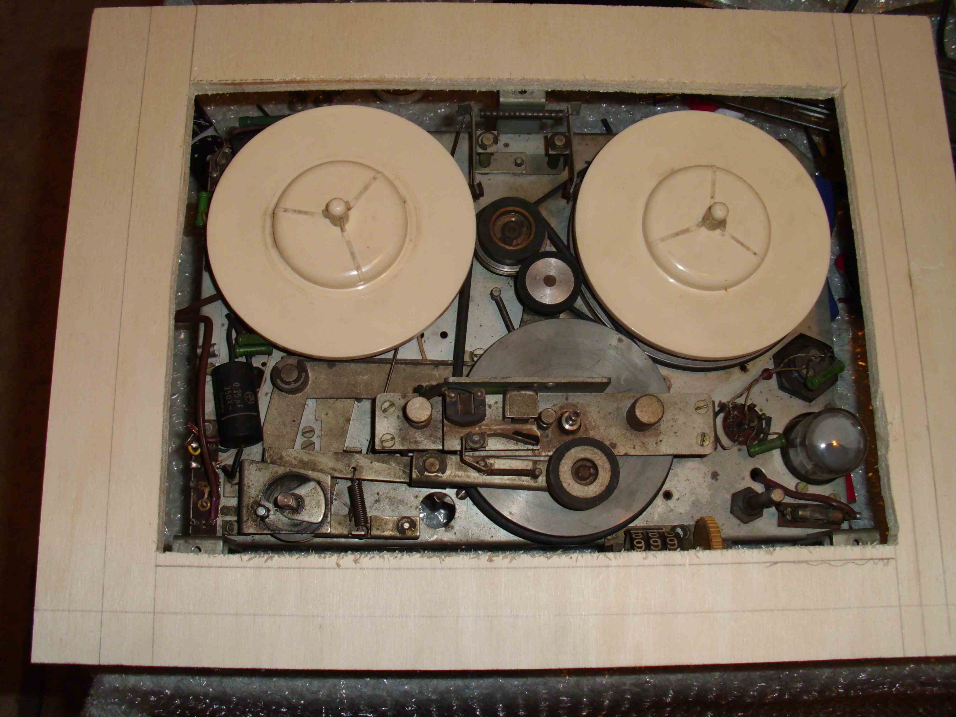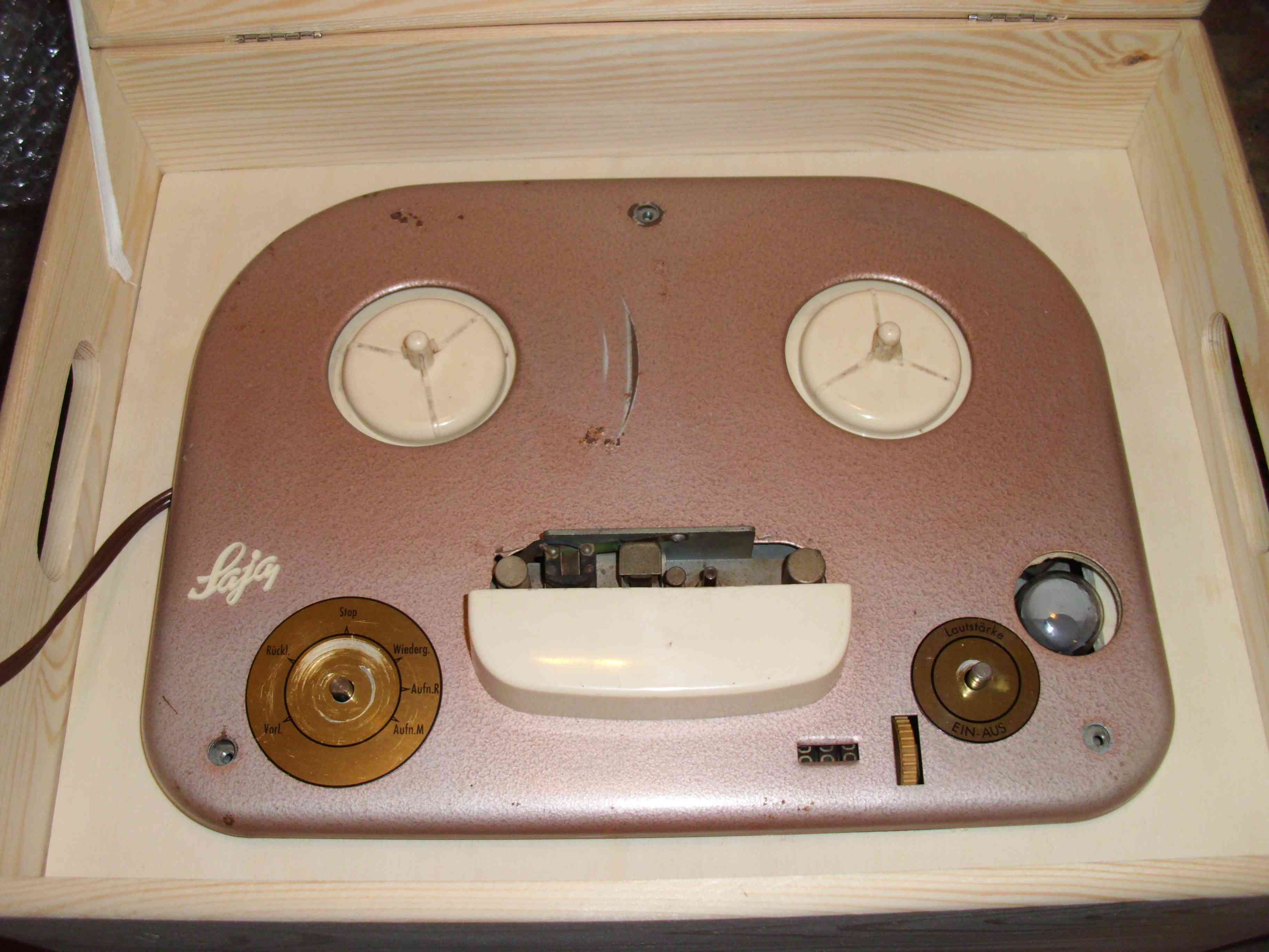 Am Montag hab ich noch ein kleines Tonbandgerät von Saja bekommen. Da es in einer häßlichen selbstgezimmerten Holzkiste steckte ging ich zunächst mal davon aus das es sich um das Modell Standard MC4 handelt. Nachdem ich das Netzkabel in Ordnung gebracht hatte habe ich die kleine eingeschaltet. Der Motor brauchte etwas "Starthilfe" und nach ein paar Sekunden lief alles soweit. Nur der rechte Bandteller ging nicht was aber an einer nach oben gewanderten Laufbuchse lag. Nachdem ich diese wieder in die richtige Position gebracht hatte und alles was sicht drehte und bewegte ein paar Tröpchen bekam lief die kleine wieder. Zwischendurch hab ich mal beim RMG reingesehen und da ist mir aufgefallen das bei meiner kleinen was nicht stimmt. Die MC4 hat als Einbaugerät nur 4 Röhren weil sie ja keinen eigenen Verstärker braucht. Meine hat aber 5. Na ja dachte ich, da ist jemandem der Koffer kaputt gegangen und da hat wer diese Kiste drumm gebaut. Aber mir kam das ganze immer noch merkwürdig vor. Beim vergleichen der Röhrenbestückung kam ich ganz raus. Laut RMG haben alle Saja's als Endröhre eine EL95. Meine hat aber eine EL42 drinn. Laut RMG ist die MC/MK4 1957/58 gebaut worden. Die erste Serie der EL95 kam 1956 raus. Wann ist meine kleine denn gebaut worden wenn ich da die Vorgängerröhre drinn habe? Im Moment bekommt die kleine eine neue Wohnung in Form einer schönen Kiste aus dem Baumarkt. Ich denke mal wenn ich alles richtig drinn habe und die Kiste lackiert ist sieht das ganze (weiß ja keiner) fast so aus als wenn es so gehört.