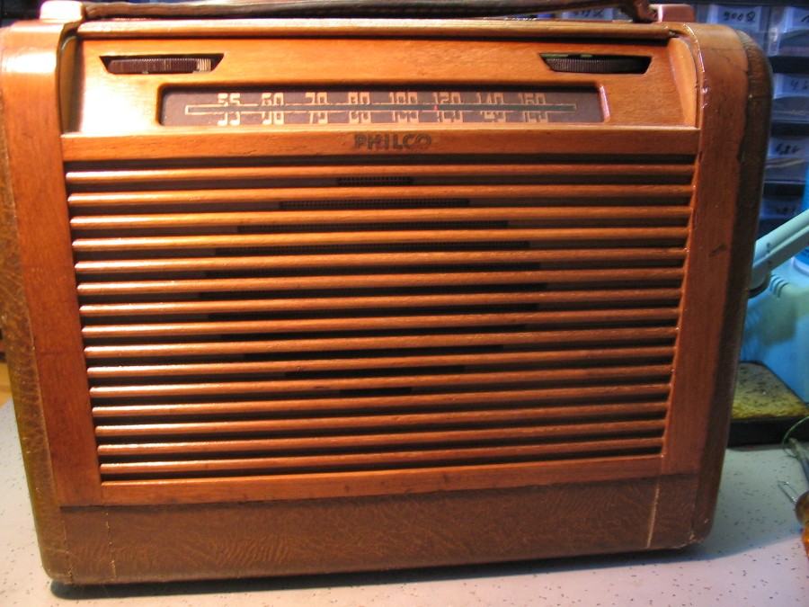 Hallo zusammen, ich habe vor einiger Zeit in dem bekannten internet Auktionshaus ein amerikanisches Philco 48-360 Röhrenkofferradio ersteigert. Hier nun der Reparatur Bericht: er beginnt mit Überraschungen; bei Demontage und erstem Überblick stellt sich heraus es handelt sich um ein Philco 46-350 und nicht um 48-360 mit der Konsequenz dass die nach Unterlagen beschaffte Endröhre 3LF4 falsch ist. Richtig wäre die 3Q5GT. Auf ihrer Position steckt dem Sockel nach eine Gleichrichter Röhre AZ 33 ( Nur 4 Stifte mit Sockel OC3 keine leserliche Beschriftung ) . Der Lautsprecher klemmt lose zwischen Chassis und Gehäuse. Die übrigen Röhren 1T4 2 X 1R5, 1U5 und 117Z3 haben allen intakte Heizungen und stecken auf den richtigen Positionen. Das Netzkabel ist abgeschnitten und ganz offensichtlich ist auch schon mal eine Batterie ausgelaufen. Die eingebaute Drahtantenne ist deshalb beschädigt. Soweit der erste Status, ich werde weiter vom Fortgang berichten sobald ich mir eine 3Q5Gt beschaft habe.
