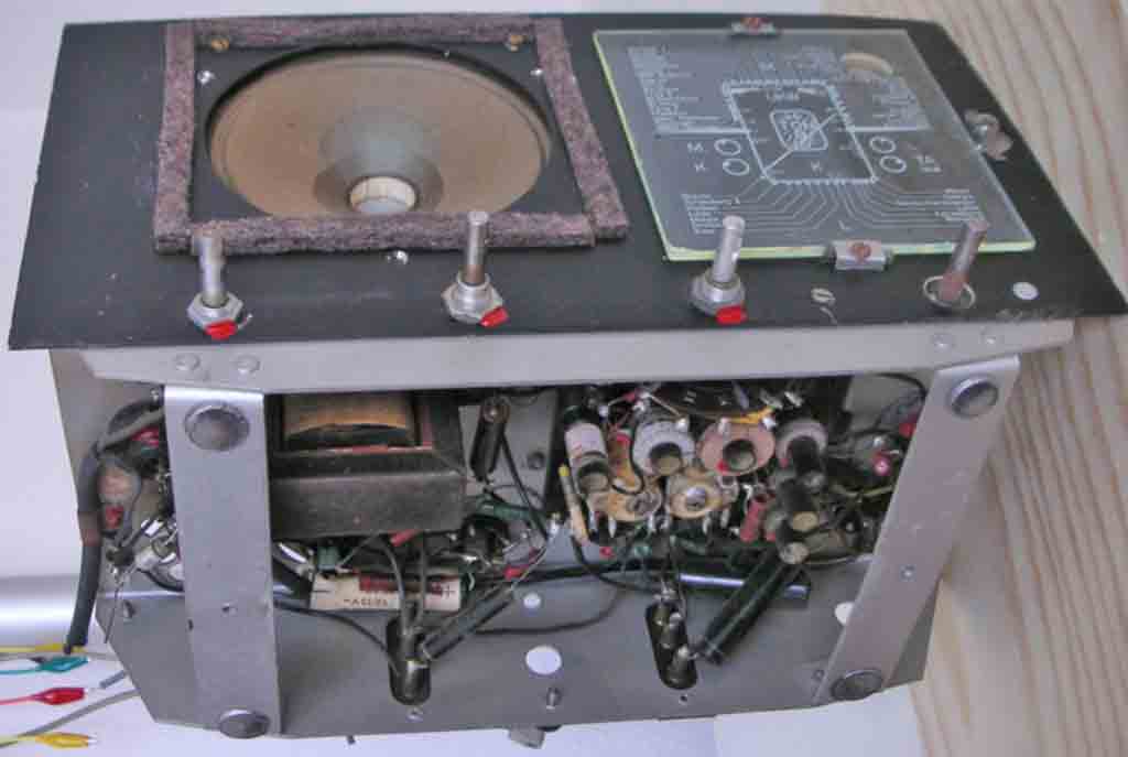 Ich würde mich freuen, wenn jemand Hinweise zu diesem oder einem ähnlichen Radio mit gleicher Röhrenbestückung hätte, besonders UAF42 gefolgt von UM4 mit NF Verstärkung. Mit welcher Gleichspannung am NF-Ausgang (Diode) der UAF42 darf man normalerweise rechnen? Ich habe maximal - 10 Volt mit einem Messgerät mit 10MOhm Eingangswiderstand gemessen, es kommen bei der UM4 jedoch nur rund - 1,5 V an. Auch der Plan des Spulensatzes mit Wellenschalter wäre hilfreich. Einige Bilder habe ich beigefügt.