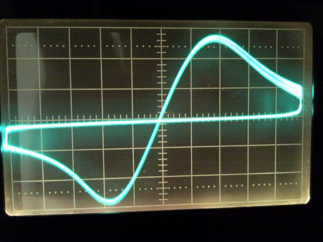 Den 10:1 Tastkopf des Oszilloskopes habe ich an Pin1 der Messbuchse angeklemmt. Dann ergibt sich die S-Kurve gemäß Anhang (SNC00471_klein.jpg).