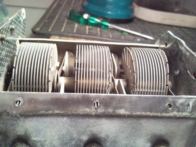 @ Heinz Der Plattenschnitt der drei Drehkos ist identisch - siehe Foto 1327 unten. Zu deinen Anmerkungen hab ich mich heute zunächst auf die mechanischen Punkte gestürzt, Skalenseil und Drehko ausgebaut, weil es noch eine nette Hebelmechanik gibt, die justiert werden muss, was in der Anleitung leider nicht beschrieben ist.