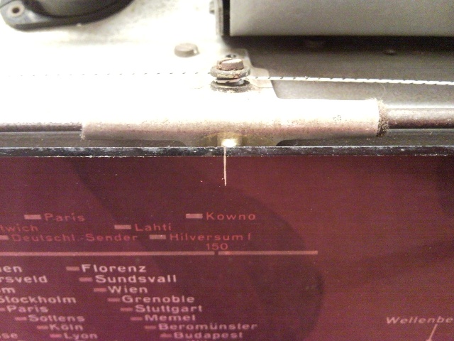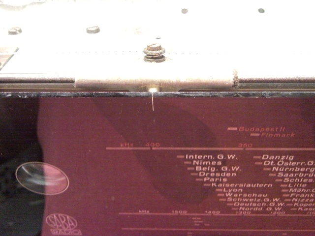 Dann der Skalenzeiger bei voll ausgedrehtem Drehko an der entsprechenden Markierung: