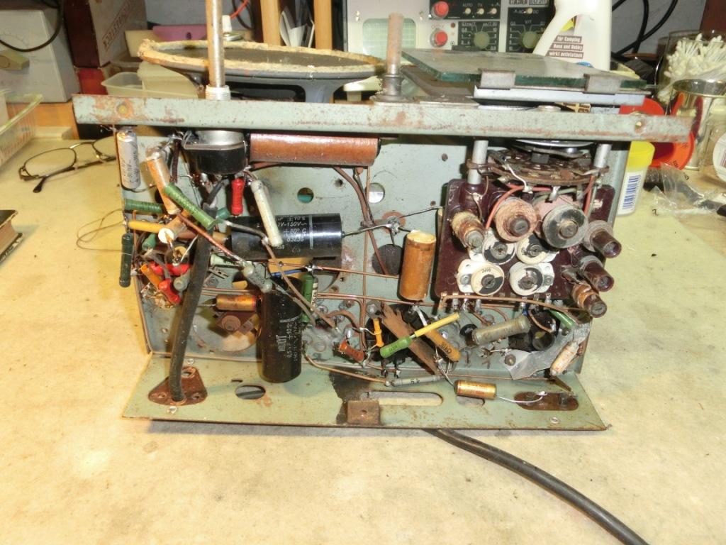 Verwirrt hat mich etwas die Bestückung des Gerätes mit Kondensatoren aus DDR-Produktion, die zum Teil erst 1958 und später gefertigt wurden.