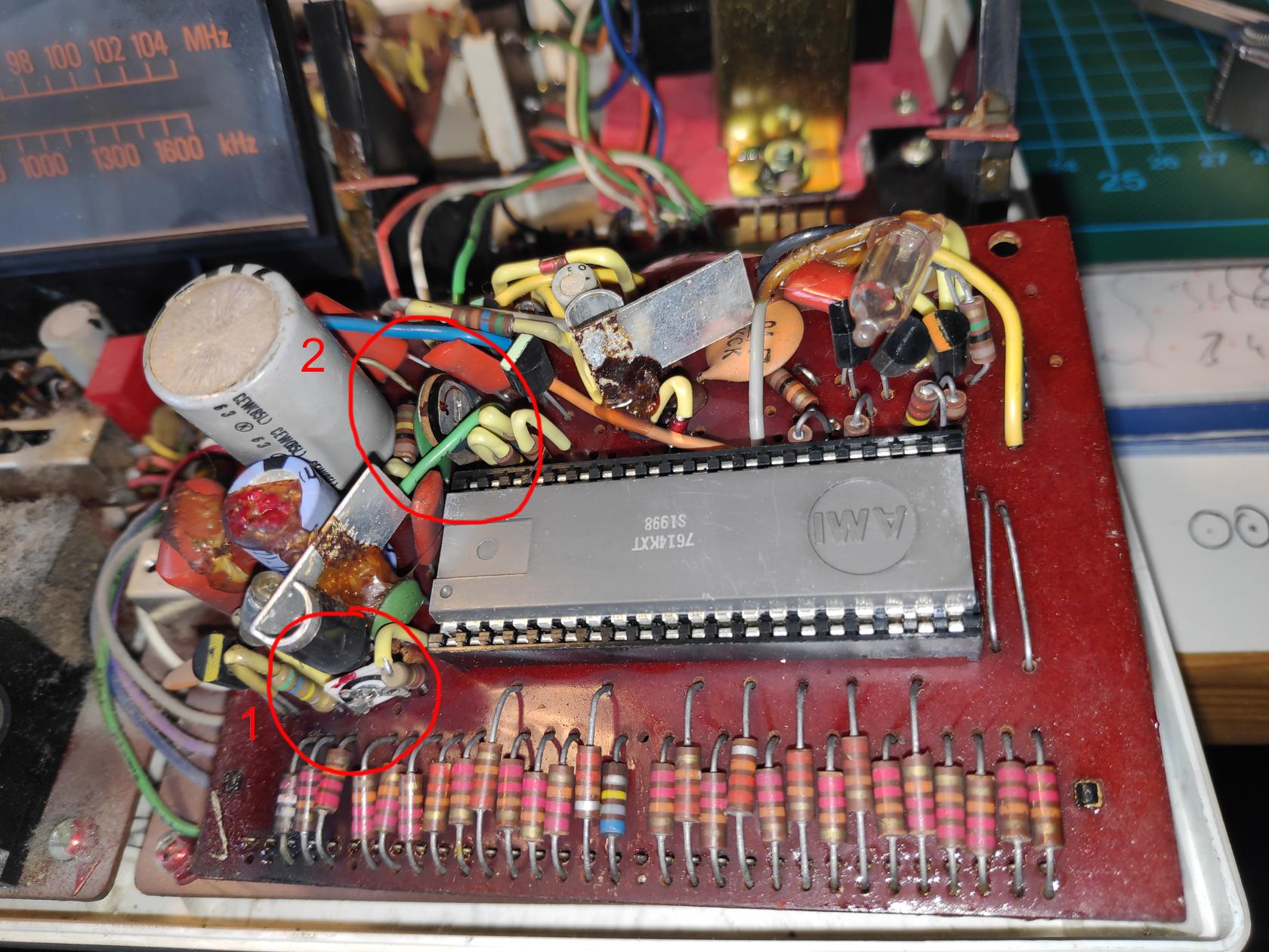 Wenn es normal ist, dass die Anzeige Nachts ganz aus ist, wäre ok, aber es muss dann einen Trick geben sie wenigstens kurz zum leuchten zu bringen und den Trick finde ich nicht. Eine Bedienungsanleitung hab ich trotz langem suchen im Netz nicht gefunden. Außerdem sehen die Kondensatoren nicht gut aus. Das könnte auch die Lösung sein.