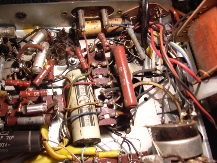 Hallo , erstmal vielen Dank für die vielen Tipps und Anregungen . Ich wollte das Radio jetzt nicht mehr einschalten ohne den Kondensator, deshalb war ja auch keine Messungen möglich. Jetzt wo der Wolle hier geschrieben hat, um was für ein Kondensator es sich da handelt kann ich jetzt hier weitermachen und euch dann auch mitteilen was Stand der Dinge ist. Ich werde den Kondensator in den nächsten Tagen einbauen und werde euch dann auf jeden Fall auf den Laufenden halten. Da meine Zeit hier immer sehr begrenzt ist, kann ich nicht jeden Tag an dem Radio basteln. Aber auf jeden Fall erstmal allen einen schönen Dank die mir helfen wollen, das Radio wieder zum Leben zu erwecken. Ich habe weitere Bilder gemacht, auf denen man jetzt ein bisschen mehr von der Endstufe sehen kann. Meine Cam ist nicht gerade die Beste, aber ich gebe alles und bearbeite die Bilder meist noch nach.