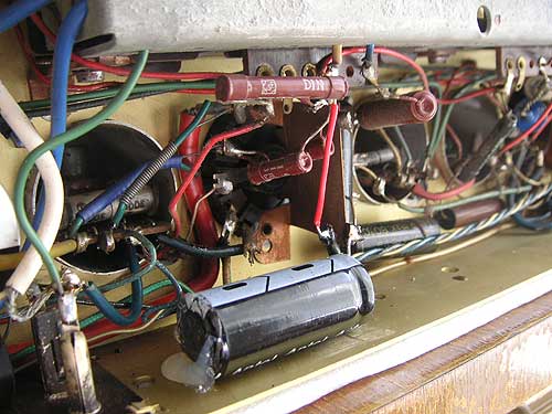 Hallo an alle, das Gerät ist jetzt fertig. Es spielt nach den minimalen Eingriffen (den Ersatz der EM 11 durch die UM11 möge mir die Nachwelt verzeihen) wirklich gut. Den häßlichen Brumm auf UKW habe ich wohl selbst mitverursacht, beim Ersatz des 40 µF Siebelkos. Es hat ziemlich lange gedauert, bis ich einen guten Platz ausgemacht hatte, jetzt nahe am NF Teil, allerdings unterhalb des Chassis. den alten defekten habe ich gekennzeichnet, aber drin gelassen und stillgelegt. Die Suche hat sich wirklich gelohnt, der normale Netzbrumm ist nur noch mit Ohr am Lautsprecher zu hören.