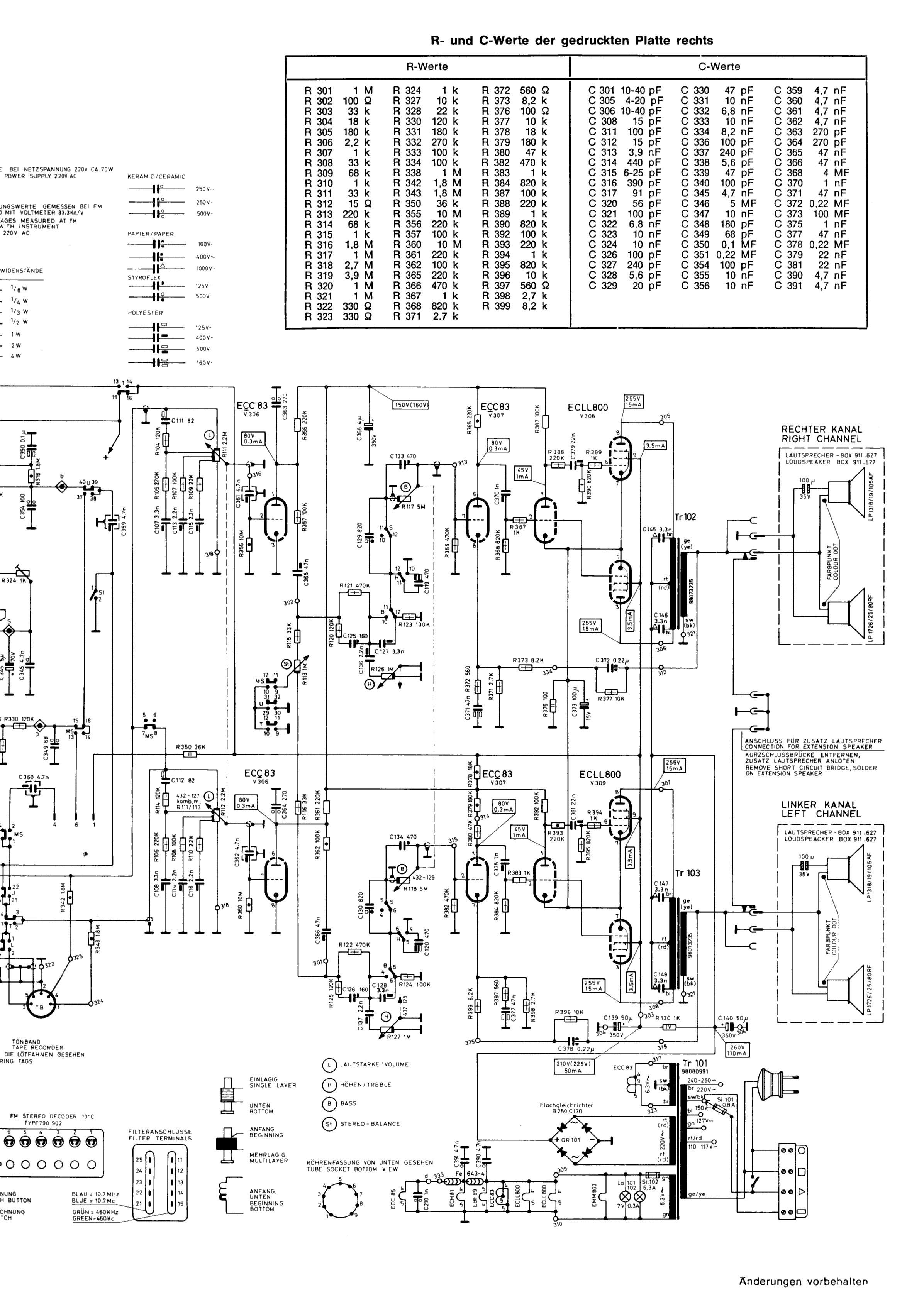 Bleibt noch anzumerken, dass die Schaltung dieses Radios schon ein wenig ungewöhnlich ist: Zwei Heizkreise, wobei ein Kreis nur eine Röhre ECC83 des einen der beiden NF-Teile versorgt. Auch eine Sicherung im Heizkreis ist eher die Ausnahme als die Regel. Warum wurde nicht eine Heizwicklung für alle Röhren verwendet? Ein Strombelastungsproblem will mir nicht einleuchten, da eine einzelne ECC83 nun so viel Strom auch nicht benötigt.