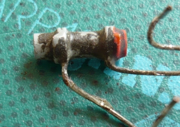 Gratulation zu Reparatur! Das ist schon bemerkenswert mit der Dreckschicht, die sehr niederohmig sein muss, da die angeschlossene Antenne mit ihrer theoretischen Antennenimpedanz nur 240 Ohm hat. Das hätte ich nie gedacht. Der Dreck sieht wie verschmutztes Wachs aus.