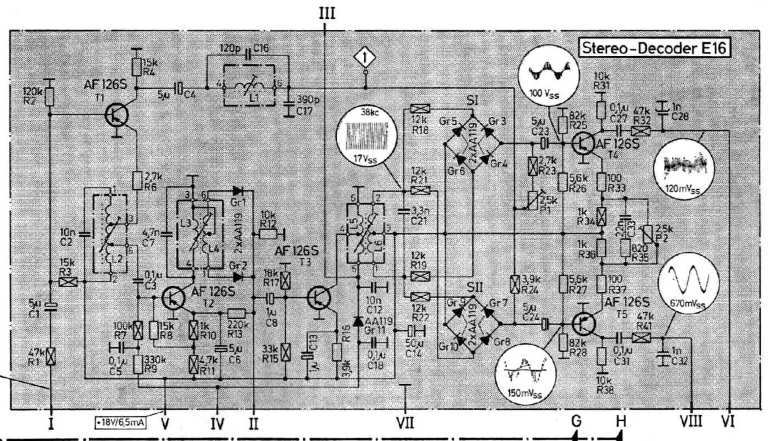Dies mein Gerät funktioniert soweit, bis auf den Stereo Betrieb. Auch die Anzeige dafür in der EMM 803 fehlt. Am Gitter dieser Röhre kann ich gerade mal mV messen. An der Anode sind ca. 25 V vorhanden. Es ist der Original Stereo Decoder E 16 vorhanden. Da dies Gerät sich noch innerlich wie auch aüßerlich, würde schon sagen, in sehr gutem Zustand befindet, will ich dies gerne erhalten. Die Elko´s brummen auch nicht. Ja, jetzt kommt die Frage mit der Bitte der Hilfe hier im Forum. Gegebenfalls einen Auszug vom Schaltbild.