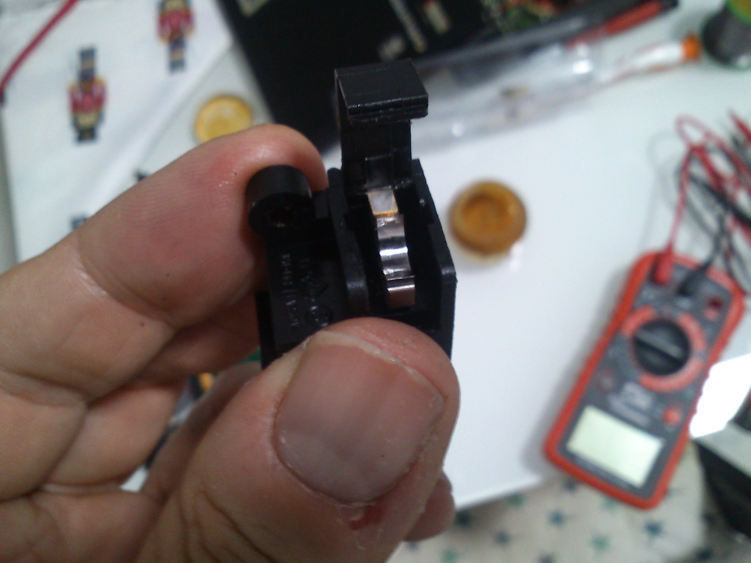Guten abend Jens Zerlegung des Netzanschluß-Buchsen-Schalters nicht einfach war. Alles ist klein und aus Plastik. Demontieren der Feder des Schalters war auch schwierig. Brachte Uhrmacherpinzetten. Ober kontake (batterie) in ordung. Untere kontakte sehr korrodiert und schmutzig. Mit kontaktreiniger und Schleifpapier Körnung 600 alles ist in ordnung gekommen. Hier sind die Fotos.