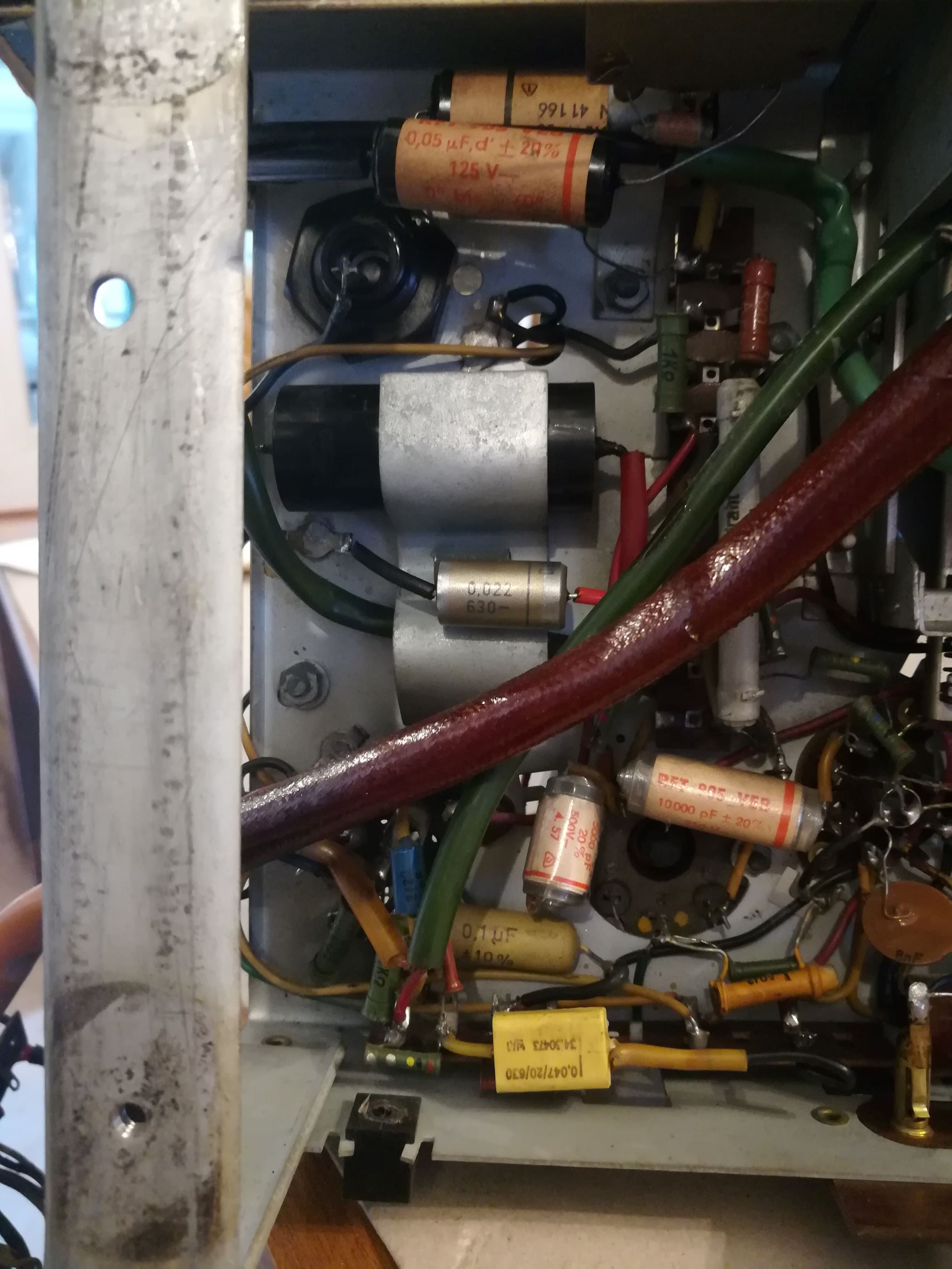 Ganz schlimm ist noch der Siebkondensator für die Anodenspannung aller Vorröhren, den habe ich jetzt auch getauscht. Nun kommt die Belegung der 14poligen Leiste vom Netzteil und dann der große Moment... Abwarten.