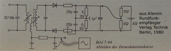 Die beiden Dioden sollten zudem möglichst gleich verlaufende Kennlinien haben. Oft wird dazu jeder Diode ein Widerstand (ca. 250 Ohm) in Reihe geschaltet, wobei einer von beiden einstellbar ist (z.B. 0...500 Ohm). Darauf wurde in deinem Tuner verzichtet, könnte aber eine Ursache für die Nichtlinearität bei kleinen FM Signalen sein.