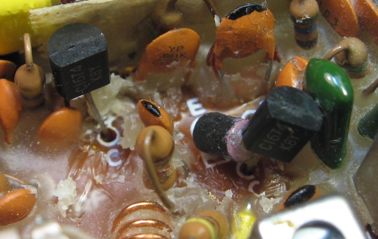 alte, 'halbtote' Transistoren sind recht verbreitet, nicht nur im HF-Bereich. Die Leistungstransistoren BD139/140 mit Jahrgang vor 1970 in meinem Fernseher habe ich mittlerweile alle ersetzt, da sie mit der Zeit die lustigsten Effekte zeigten, neben 'normalem' Verhalten wie zu wenig Verstärkung aber auch wildes Schwingen in bestimmten Arbeitspunkten sowie sporadische Ausfälle und andere nicht-kausale Verhaltensweisen.