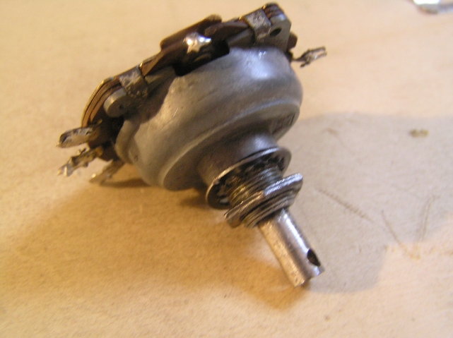 das alte Poti, ist ja wie das neue, ein Drahtpotentiometer. Beim alten Poti, so weit ich mich noch erinnern kann, ist der Draht zwischen Drehkontaktanschluß und dem eigentlichen Drehkontakt abgerissen. Aber wie kann man soetwas reparieren?, anlöten kann man es durch den massiven Draht auch nicht, da das Lötzinn keine Haftung,..etc. auf dem Draht hat. Weiteres war die Widerstandsbahn abgenutzt.