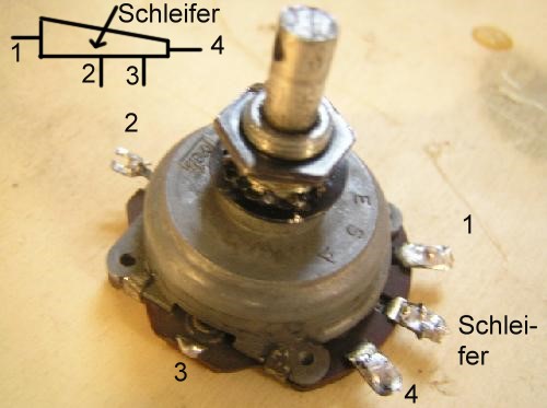 Danke für die Photos. Das verwendete Poti hat eigentlich einen Anschluß zu wenig.