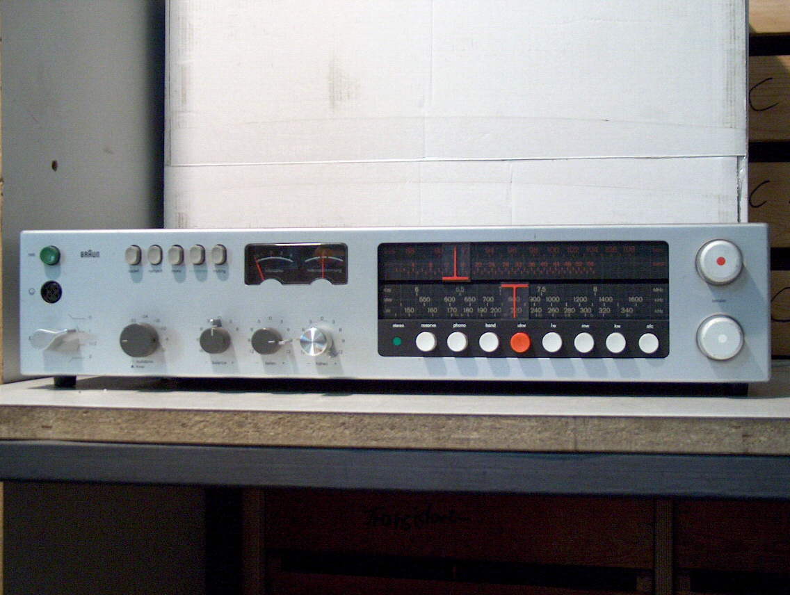 Hallo,Willi.Ich besitze so ein Gerät seit vielen Jahren,habe es auf einer Radiobörse erstanden der Preis war so um die 150DM.Es begeistert mich heute noch das Design,und die Technik.Das Design stammt vom bekannten genialen Dieter Rams um 1970.Heute wieder in Artikeln über Formgebung in den Medien present,habe letzte Woche noch einen ganzseitigen Artikel in der WNZ (Wetzlarer neue Zeitung-Dill Post)gelesen.Die Technischen Daten sind schon gut,zb.Eingangsempfindlichkeit UKW kleiner 1 mükrovolt.Nun zu deinem Problem.Mein Gerät hat auch leichte Tonaussetzer,schuld daran ist das Lautstäkepoti.welches man bedingt durch Alterung mit Kontaktspray gelegentlich bearbeiten muss. Mit dem Tastensatz ist es auch so.Aber dazu muss man das Gehäuse abnehmen um an die Teile heranzukommen,ist etwas umständlich durch kaum sichtbare Schrauben geht aber.Als Kontaktsprays nehme ich seit Jahrzenten T6 Oszillin,und auch als Vorreiniger Lectro-Clean beide von Teslanol.Muss man wenn es wieder mal stört machen,Tasten und Potis auseinanderbauen und reinigen geht meistens schief. mfg.Joachim.