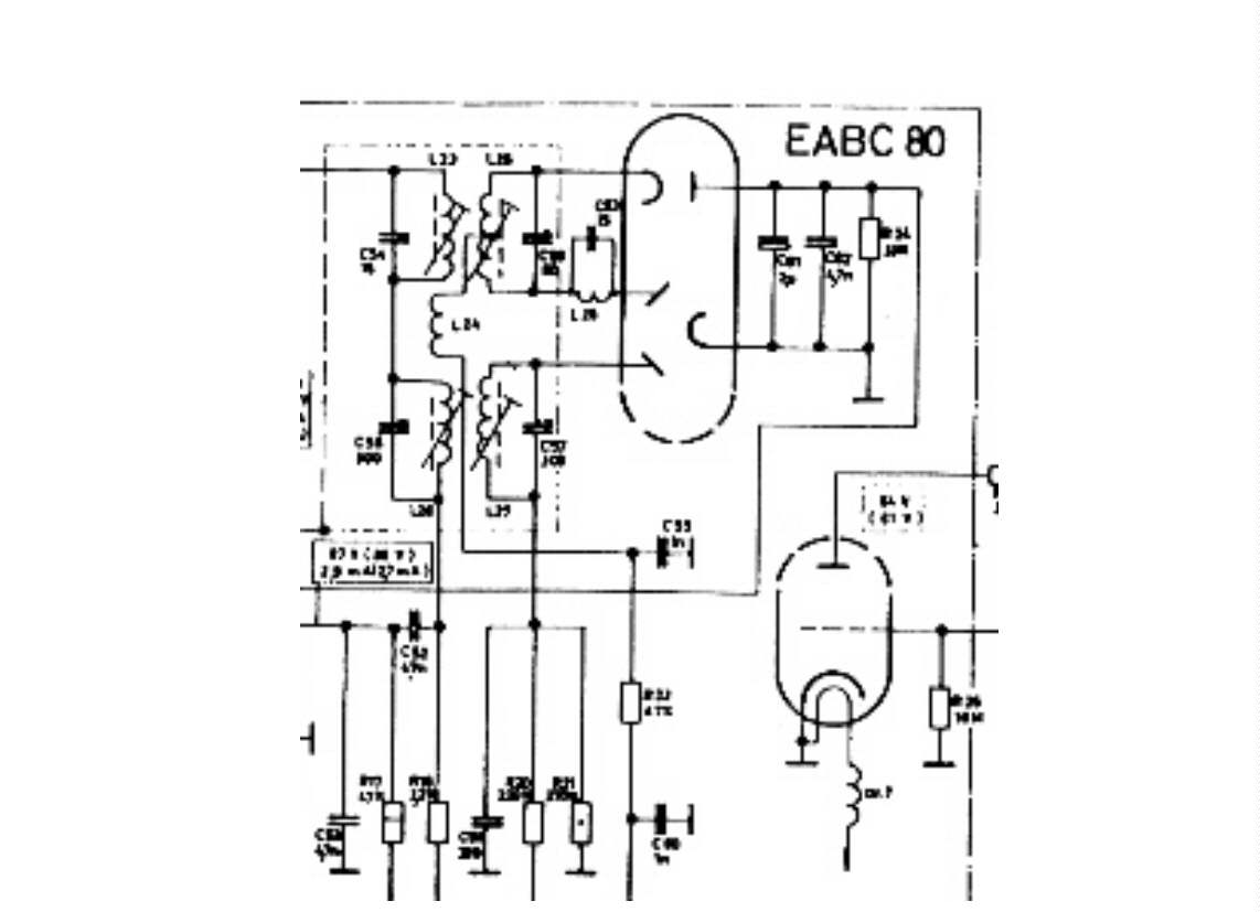 Sei zunächst herzlich willkommen hier im Forum. Dein Loewe ist recht "jung", Baujahr 1961/ 62. Zu dieser Zeit wurde das Prinzip der Flankengleichrichtung nicht mehr verwendet, das Gerät hat einen Ratiodetektor mit der Röhre EABC80. Als Stromlaufplan kann jede mit EABC80 bestückte Schaltung herangezogen werden, da das Schaltungsdesign weitgehend übereinstimmt. Könnte bei Dir ein Fehlabgleich vorliegen? Irgendwo in der Umgebung der EABC80 und dem Ratiofilter sollte ein Elko zu finden sein. Hier kannst Du zur Messung der Richtspannung ein Meßgerät anschließen, da das Gerät keine Abstimmungsanzeige hat. Anbei ein Schaltungsauszug des Demodulators.