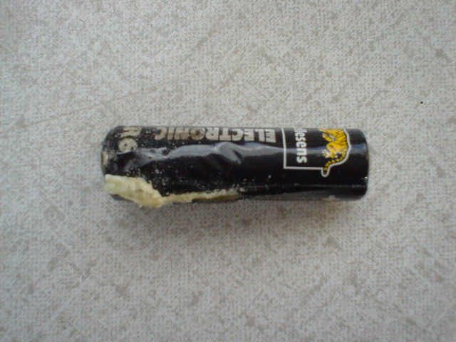 eben am Müllcontainer gewesen und beim Umdrehen ein kleines Etwas gesehen,mit nach oben genommen,eine Battrie die geschwollen bzw. ausgelaufen war entfernt,Kontakte abgekratzt,ausgewaschen,blank gemacht 2 AA Akkus rein spielt!!!