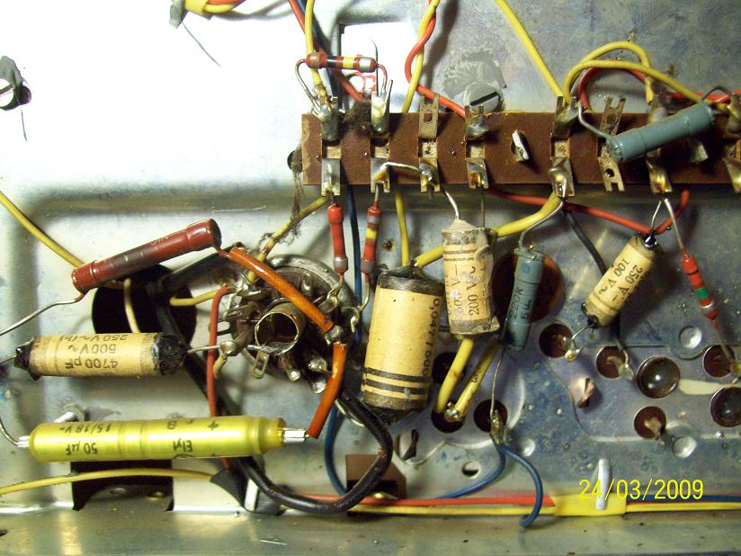 Hier: Bilder der Kernsanierung, (alles raus, saubermachen, wieder rein), Kondensatoren hat er schon frische, das Gehäuse ist poliert, eine neue EL84, Zusammenbauen mit anschließender kleiner Nachtmusik -jetzt klingt er so wie er aussieht: pieksauber.
