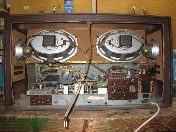 Resumee: Alle Röhren werden geheizt, Radio spielt UKW und andere Bänder ohne Probleme ab, Klang scheint bei höheren Lautstärken etwas unausgewogen zu sein, alle Bedienelemente / Seilzüge funktionieren, Magisches Band ist ausgefallen.