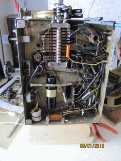 Bin gespannt was da noch zum Vorschein kommt. Das ist bestimmt noch nicht alles. Kerkos, Drehko, Spulen und Widerstände sind noch alt, alles andere war in einem maroden Zustand. Da braucht man eine Menge Geduld.