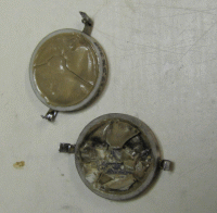 Bleibt noch übrig, ob man im Antennenkreis auch jeden nachmessen muss, das sind andere Typen - Rohrkondensatoren. Die in den Filtern waren 20mm Keramikscheiben. Einen habe ich kaputt gemacht und da sieht man Brandstellen auf dem Belag.