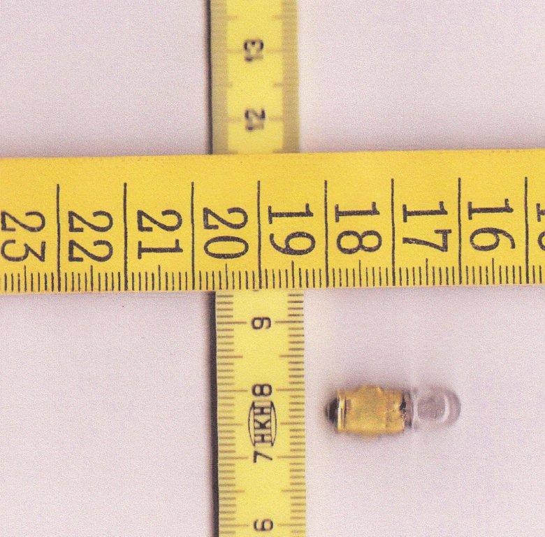 Hallo Jürgen, danke für die schnelle Reaktion .habe mir das Teil (kaputt!),nochmals angesehen ,mit der Lupe ! Es ist ein Skalenbirnchen von OSRAM 7V/0,1A ,anbei als Anhang mein Versuch über Scanner ,das Birnchen zu fixieren! Ich hoffe jetzt sieht man mehr !? Es ist kein Bayonettver- schluss ,es sind links und rechts je eine gerade Führungs- schiene( ca.4mm lang)zu erkennen! Sieht aus als wenn das noch das Orginallämpchen ist? Mal sehen ob wer was hierzu mitteilen kann !