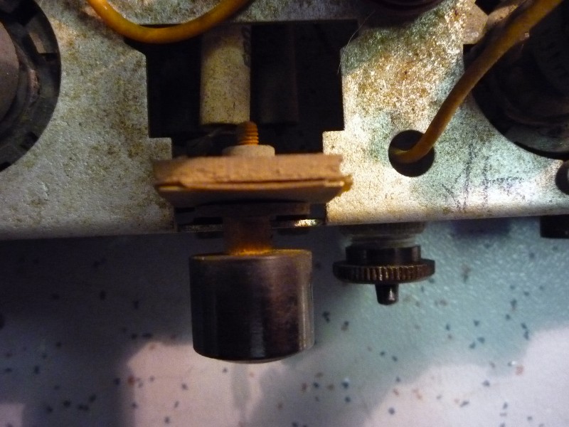 Lautsprecher und passender Übertrager sind gefunden, die über den Selengleichrichter zur Unterstützung angebrachte Diode IN4007 + 500 Ohm sind durch die Erneuerung des Koppel C überflüssig geworden und deshalb wieder entfernt worden..Ein weiteres Detail zeigt den in der Rückwand integrierten Sperrkreis. Er benützt die selbe Kondensatortechnik wie bei der Rückkopplung. Auch da wird durch eine Gewinde-Spindel der Abstand der Platten zueinander verändert. Der Lautstärke Poti konnte ich durch spülen wiederbeleben. Ob das von Dauer ist, wird sich nicht so schnell zeigen, da das Gerät wie alle anderen nach Fertigstellung im Regal verschwinden wird.