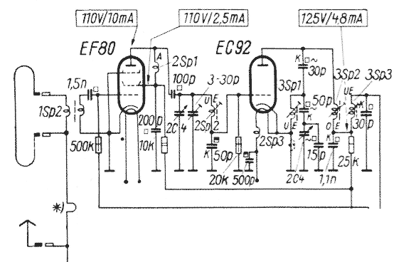 Ist sowieso merkwürdig, für die Vorstufe noch eine Penthode EF80 (rauschen) zu nehmen, wenn doch schon eine zweite EC92 bereit stände.