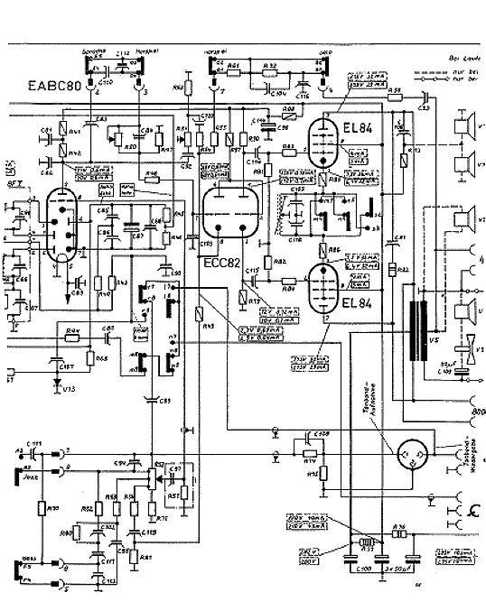 neben der von Martin empfohlenen Widerstandsmessung des Ausgangstrafos, solltest Du auch mal die EABC 80, als NF-Vorverstärker gegen eine gut funktionierende austauschen bzw. dort Kontrollmessungen vornehmen. Den klassischen Kathodenelko allein gibt es bei Deinem Gerät nicht. Dafür ist eine R-L-C-Kombination vorhanden. Da ist noch eine Spule mit Mittelanzapfung im Katodenkreis. Wenn die Kathodenspannung den vorgegebenen Wert hat, müsste eigentlich der Fehler aus der Ansteuerung der Endröhren kommen. Wie immer sind hier Geduld und Ausdauer die besten Ratgeber. Ich wünsche Dir ein schönes Wochenende.