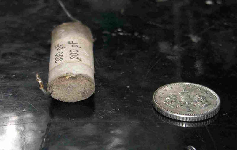 Schade! Einige Kondensatoren sind in Pappröhrchen und ich hatte gehofft diese wären 'was anderes. Aber Papier muss weg. Vielleich finde ich 'was moderneres, das ins Röhrchen passt. (Nicht für die Lichtantenna aber in den Antennakreisen ist auch ein 300pf)