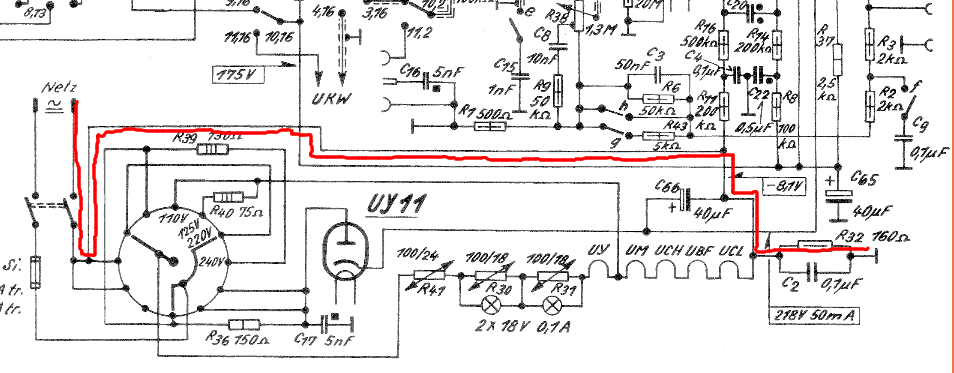 ich bin momentan beim Grundig 365GW noch mit Messungen beschäftigt - siehe auch den anderen Thread zu dem Gerät. Da dieses Gerät ein Allströmer ohne Netztrennung ist, hat es einige Koppelkondensatoren, um eine Trennung zwischen Gerätemasse und den Anschlussbuchsen herzustellen. Es gibt hier folgende Buchsen: TA; Lautsprecher; Antenne; Erde; UKW-Dipol