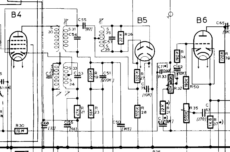 der Schaltbildauszug zeigt nicht die Wege, den der Gleichrichterzweig bei C51 weitergehen, zwei Leitungen führen nach unten weg, wohin? Allerdings ist die Diode am UKW-ZF-Anoden-Kreis der letzten ZF-Stufe schon ein Hinweis auf eine Begrenzerschaltung...