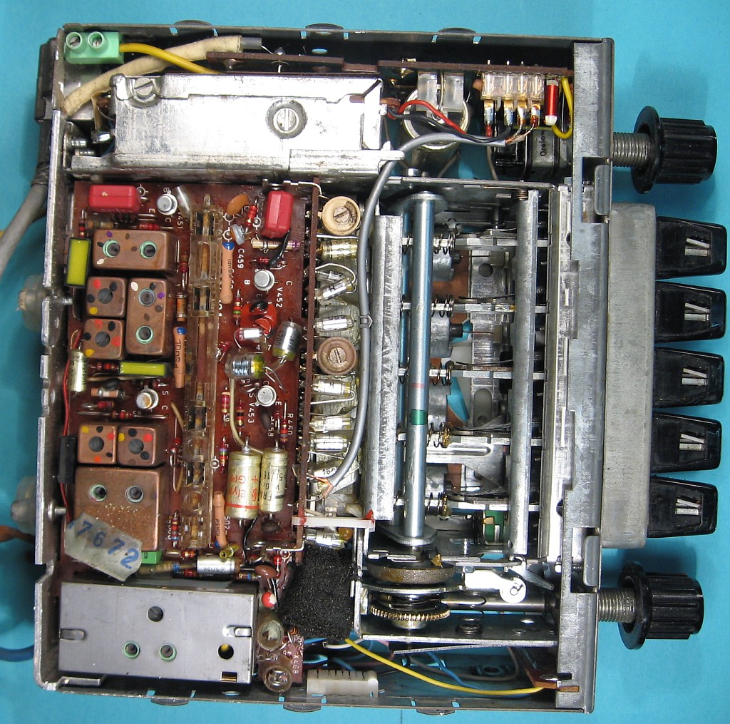 Die Drehknöpfe sind leider nicht original. Bemerkenswert ist, dass sich pro Taste eine Frequenz durch eine Mechanik speichern lässt. Dazu muss die betreffende Taste herausgezogen werden, der Sender eingestellt werden und dann wird die Taste wieder eingedrückt.