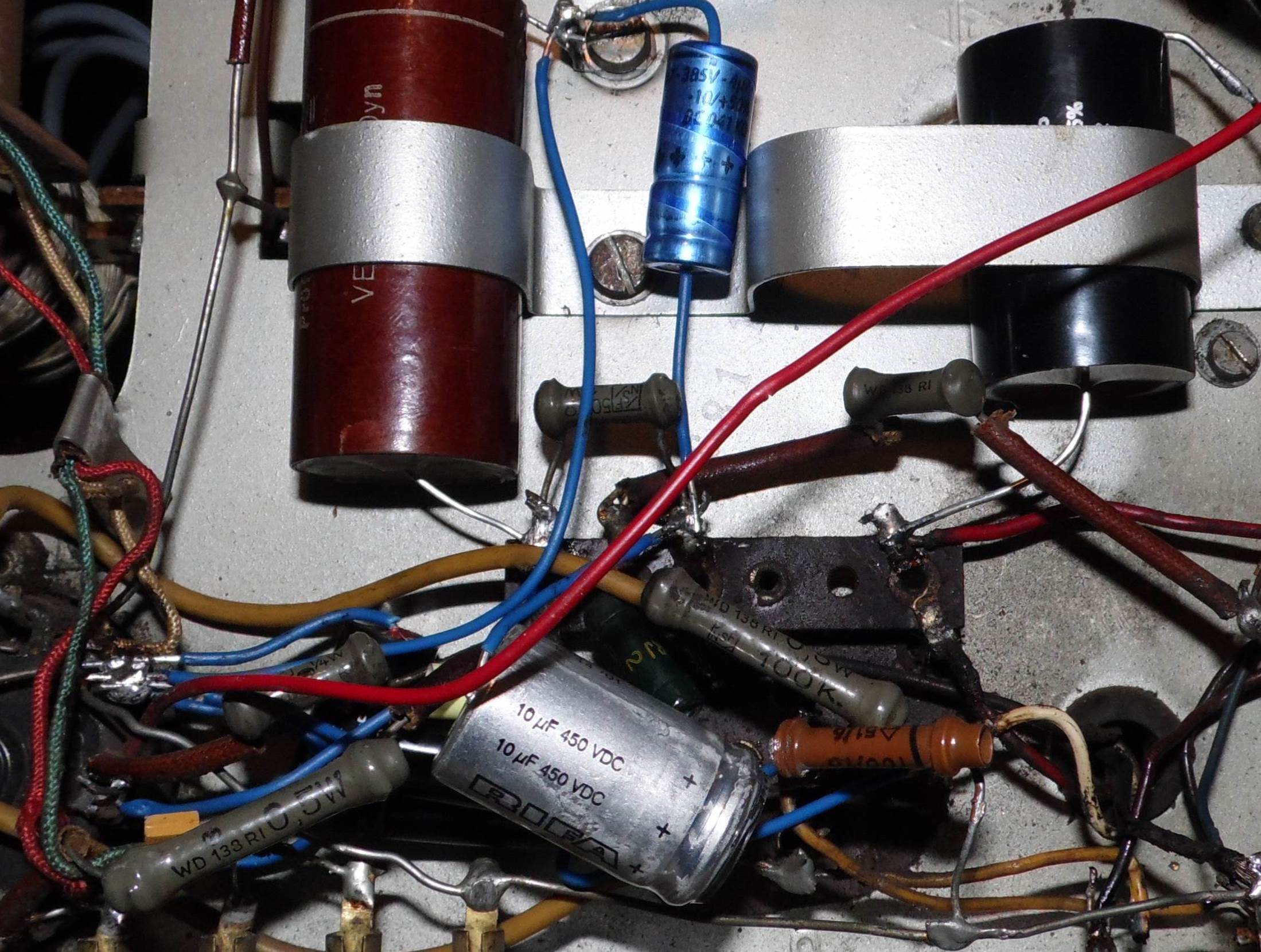 Hallo an alle, ich habe meinen VE 301 dyn Teilweise Restauriert. Habe heute die neune Kondensatoren eingebaut. Nur es will noch nicht Spielen. Könnte es eventuell daran liegen, das ich es nicht Geerdet habe ? Ich habe alle Kondensatoren durch gleichwertige ersetzt. Es ist jeder an den dafür vorgesehenen Platz. Wen ich das Gerät einschalte dan hört man garnichts, weder ein leichtes Brummen noch ein Rauschen beim Sender suchen. Schaut euch mal die Bilder an, vielleicht seht ihr einen Fehler, Danke.