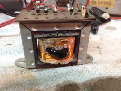Nächster Teil: Durchgebrannter Ausgangsübertrager Übertrager ausgebaut und durchgemessen. Durchgang vom Endstufenanoden zur Anzapfung zwar aber kein Durchgang mehr der Primärspule von Anzapfung zu ihrem Ende.