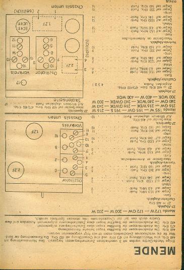 Hallo in die Runde, seit kurzem besitze ich einen "Mende 216W" von 1940, der in einem sehr gutem Zustand ist. Dass er zu mir ohne Röhren kam war bedauerlich, stellt aber kein Problem dar. Man staunt, in welcher Qualität dieses Rundfunkgerät gefertigt wurde, wenn man die Einheits-oder Volksempfänger dagegen hält. Leider muss ich alle Trimmer der Vor- und Oszillatorkreise tauschen. Aus dem Schaltplan, der mir vorliegt, sind deren Werte nicht zu ersehen. Zum Anderen denke ich mir, dass es bei dieser Schaltungsausführung wichtig ist, den Abgleich in der richtigen Reihenfolge durchzuführen. Also hier zuerst KW, dann MW, dann LW. Die Senderskala ist natürlich auch in Meter beschriftet. Das ist an sich kein Problem, da man diese Angaben in Frequenzen umrechnen kann, aber bei der Langwelle ist die einzige Angabe 2000m. Die Zuordnung der Spulen und Trimmer zu den Wellenbereichen habe ich herausgefunden, aber um den Abgleich einigermaßen exakt durchzuführen, müsste ich den Anfang bzw. das Ende oder die Frequenzmarken der jeweiligen Bereiche bei diesem Gerät kennen.