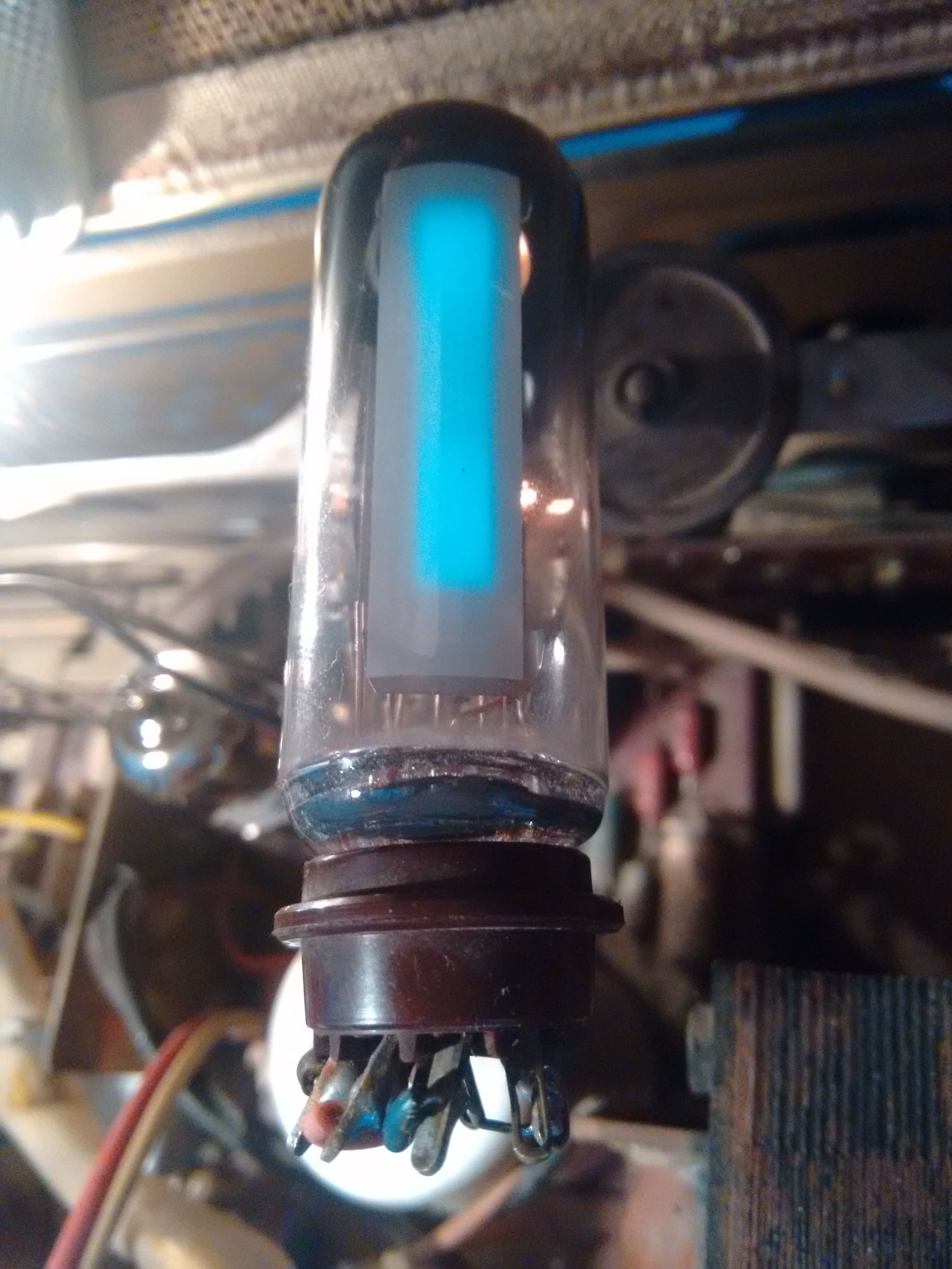 Ich habe sie durch eine neue russische EM84 von Ebay ersetzt. Diese leuchtet nach einschalten des Radios wunderbar kräftig, bloß es tut sich außer leuchten garnichts. Beim umherschalten auf UK Empfang dachte ich, ich würde das Band stimulieren können?