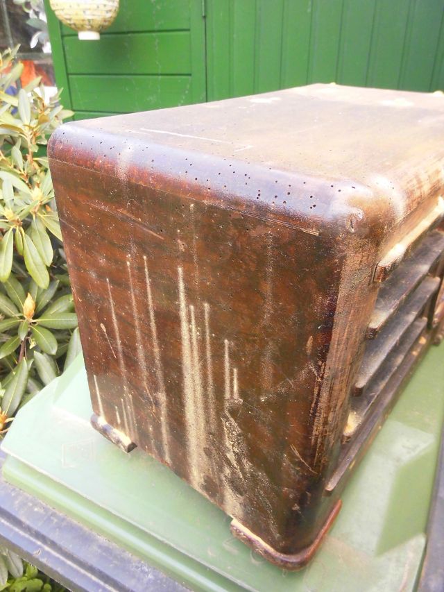 mein Körting Tourist sah ähnlich schlimm aus, passte aber so gerade in den Backofen. Eine gute Stunde hat ausgereicht. Danach Holzkit, Beizen und Lackieren. Allerdings kann ein Schälchen Wasser nicht schaden, damit das Holz sich nicht verzieht oder Risse bekommt.