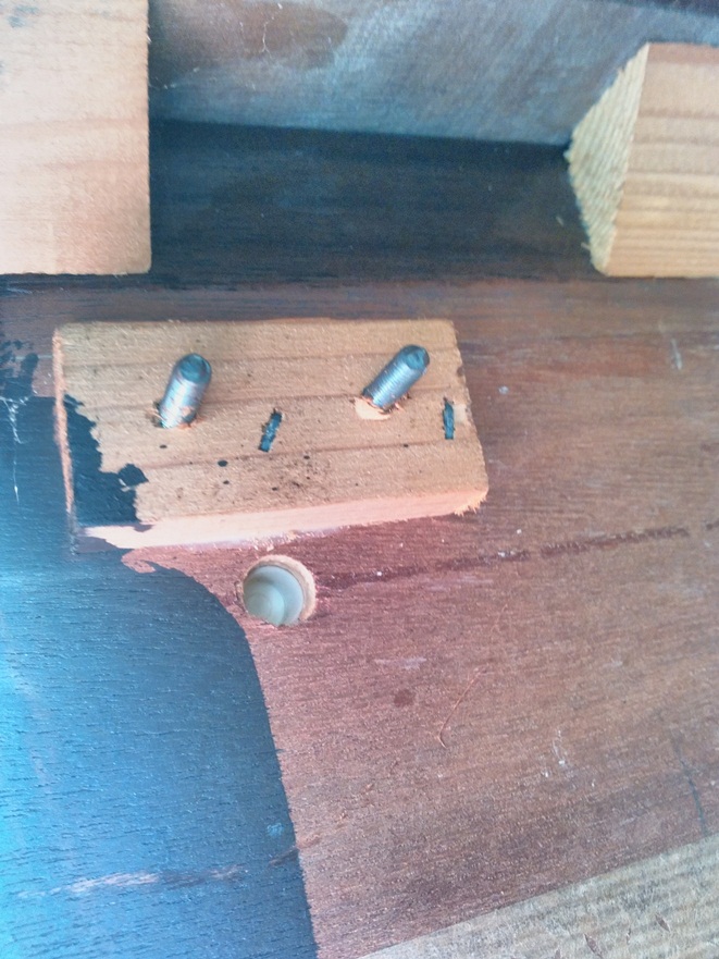 Nordmende hat immer eine Abrutschsicherung verbaut, das heißt selbst wenn alle Muttern gelockert sind, rutscht das Chassis nicht nach unten. im Fall dieser Isabella waren diese jedoch unüblich angenagelt und durch Feuchtigkeit und eine Standzeit von 58 Jahren fest auf die umgebenden Holzbauteile gepresst. Das sind 2 Vierkantleisten 12x12mm rechts und links. Danach wie du sagst aufpassen, das schwere Chassis rutscht ab, zumal ich im Kofferraum ja wegen der 2. Truhe keinen Platz vor der Öffnung habe.