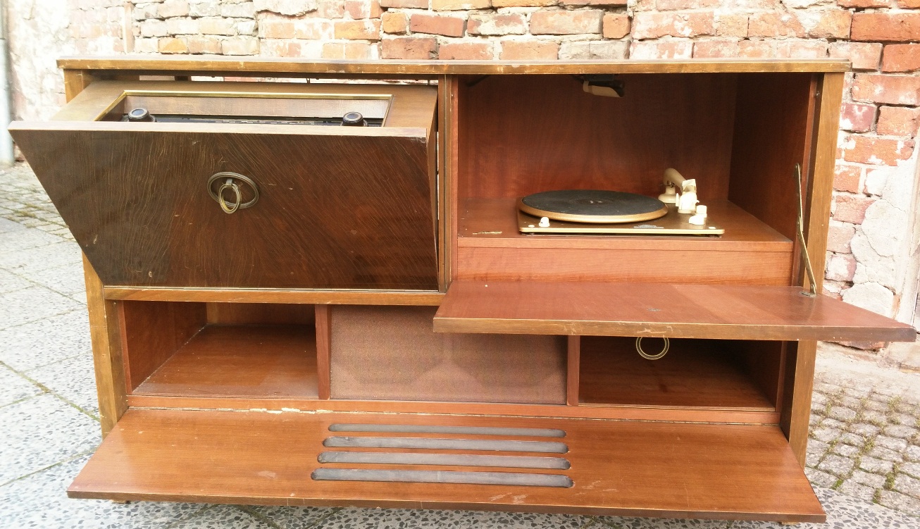 Hallo, ich habe eine relativ seltene Musiktruhe Metz 601WF von 1957 und würde gerne zur Reparatur das Chassis ausbauen. Hatte jemand schon einmal ein solches Gerät? Es handelt sich um ein ausklappbares Chassis wie in Nordmende Isabella oder Arabella 1961-1963. Von Nordmende (und meinen anderen Beiträgen) kenne ich es, dass das Chassis an 4 Schrauben neben dem Blechrahmen befestigt ist und zusätzlich eine Absturzsicherung, die verhindert, dass beim Demontieren der letzten Schraube alles mit Schwung auf den Holzboden unterhalb fällt. Bei Metz gibt es so eine Sicherung nicht. In den Laschen rechts und links vom Blechrahmen sind jeweils 2 maschinenschrauben gesetzt und an einem Blechstreifen darunter noch einmal jeweils 3 Holzschrauben sichtbar. Nach dem Entfernen von 3 Maschinenschrauben bewegt sich nichts!