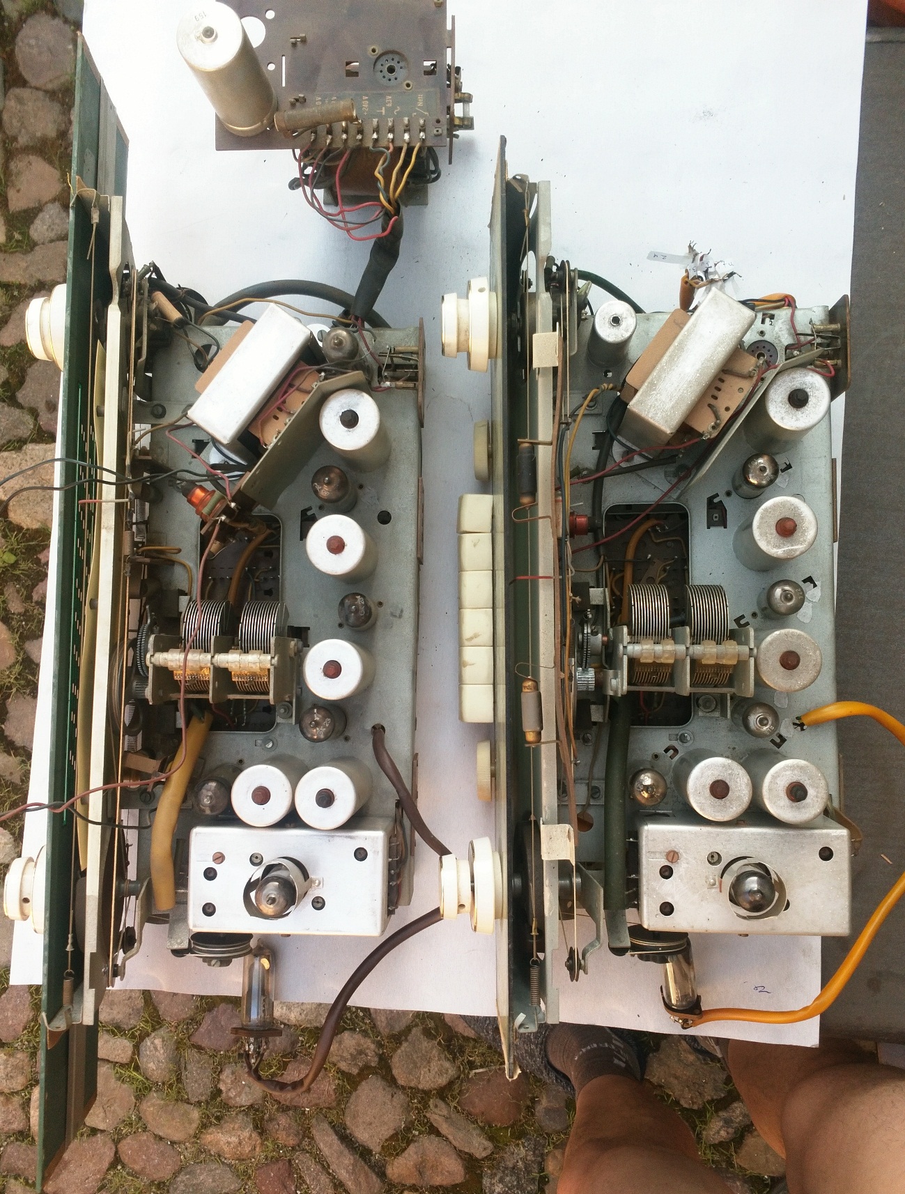 Bis auf den Ersatz durch 2 ganz neue habe ich das entfernt und auch sämtliche Teerkondensatoren, meist zum Sieben der Hochspannung ersetzt. Der Ratioelko hatte keine Kapazität mehr, also ebenfalls ersetzt, dazu noch einen abkorrodierten Widerstand im separaten Netzteil.