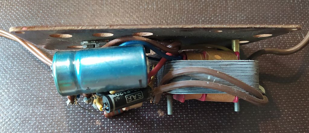 Beim Radio hört man nur den 'Anschaltknacks' und die beiden Endstufentransistoren (2 x AC117) werden heiss. Vermutlich ist der Leerlaufstrom zu hoch eingestellt. Ein Schaltplan wäre hier notwendig, aber leider kann ich an und in dem Gerät keine Typenbezeichnung finden. Am Gehäuse steht nur 'UNIVERSUM'. Kennt vielleicht jemand von Euch dieses Gerät?