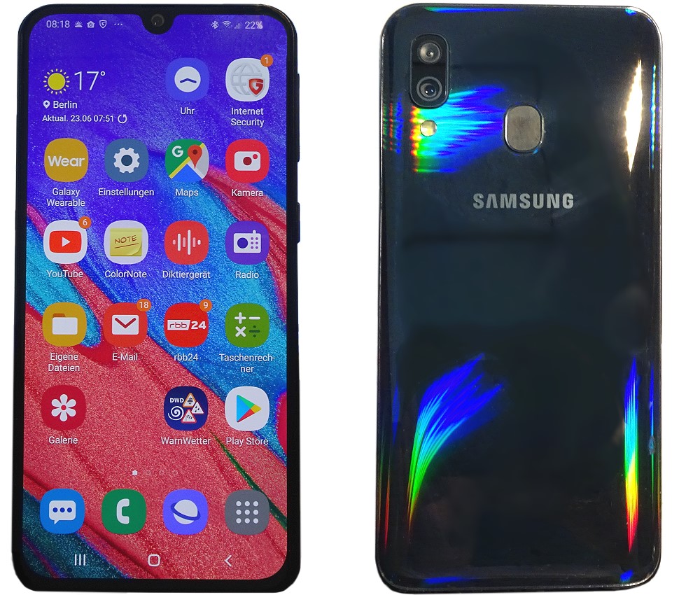 wie schon "angedroht", hier die kurze Vorstellung meines aktuellen Smartphones: Samsung Galaxy A40 (einem unteren Mittelklassen-Geräts) und das ist auch gut so. Ich will einfach nicht alle paar Jahre 500 - 700 Euronen für ein Halbwegs-Spitzengerät ausgeben, weil die ja auch schnell unmodern und un-cool werden.