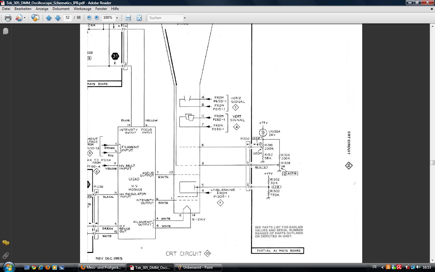 1.) So ziemlich alle Spannungen die im Bereich Bildröhre benötigt werden entstehen in einem einzigen DC-DC Wandler, u.a. hat der auch eine separate Sekundärwicklung für die Heizung der Bildröhre. Die Prüfung all dieser Sachen ergab: OK.