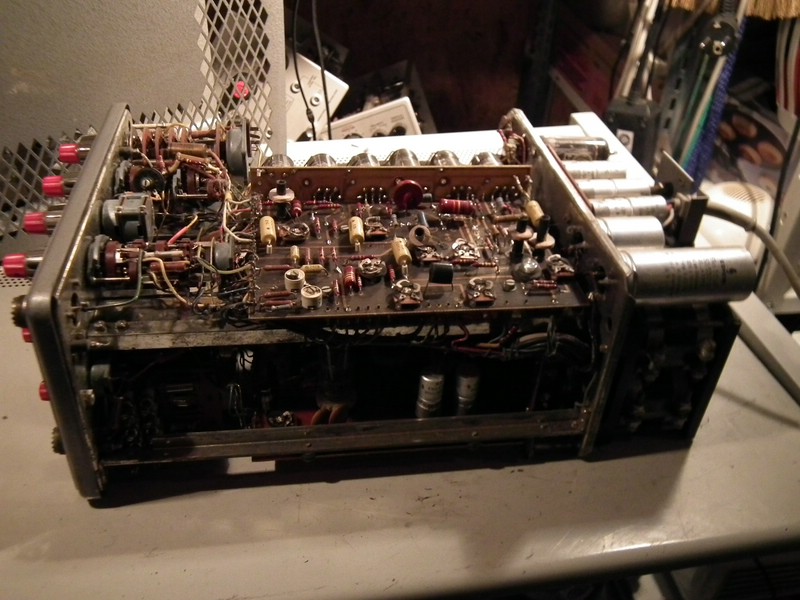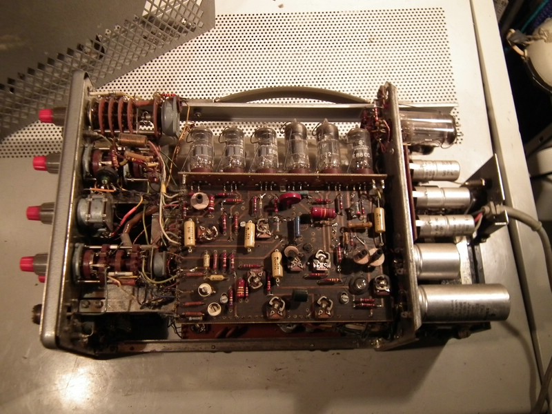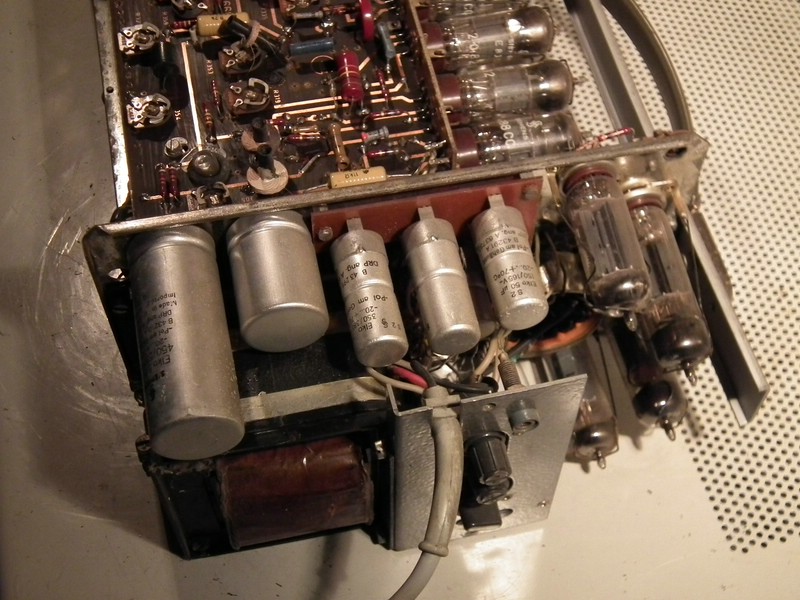 - die 88v fehlten ganz, das wurde behoben. - 350V am Siebelko, sind nun auch wieder da, - die negative 120V ist viel zu niedrig. Und wird zudem von den anderen Regelstufen als Referenz genutzt. Dieses Gerät enthält im Netzteil Fernsehröhren, die sind bei Tek-Sammlern nicht vorrätig. PCL82 hab ich sogar 2 frische dagehabt, aber bei der PL84 muß ich passen... Die EZ80 scheint noch gut zu sein.
